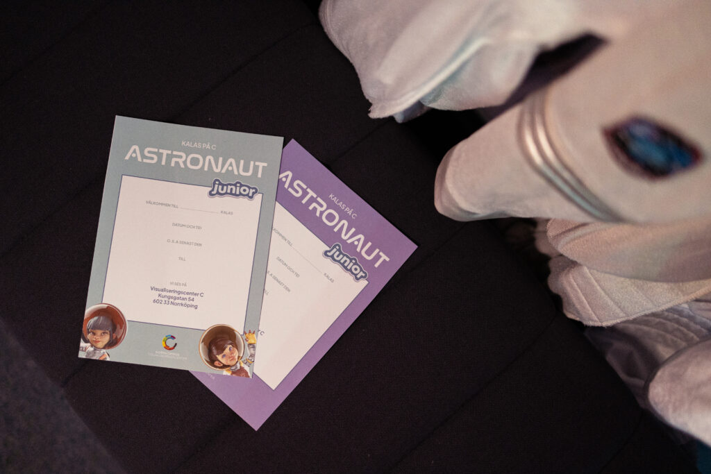 Vi välkomnar kalasgruppen att kliva in i rymdskeppet för en stunds hårdträning, ledd av roboten Koda. En spännande, fartfylld och rolig upplevelse som resulterar i ett rymddiplom och den ärofyllda titeln Astronaut Jr.