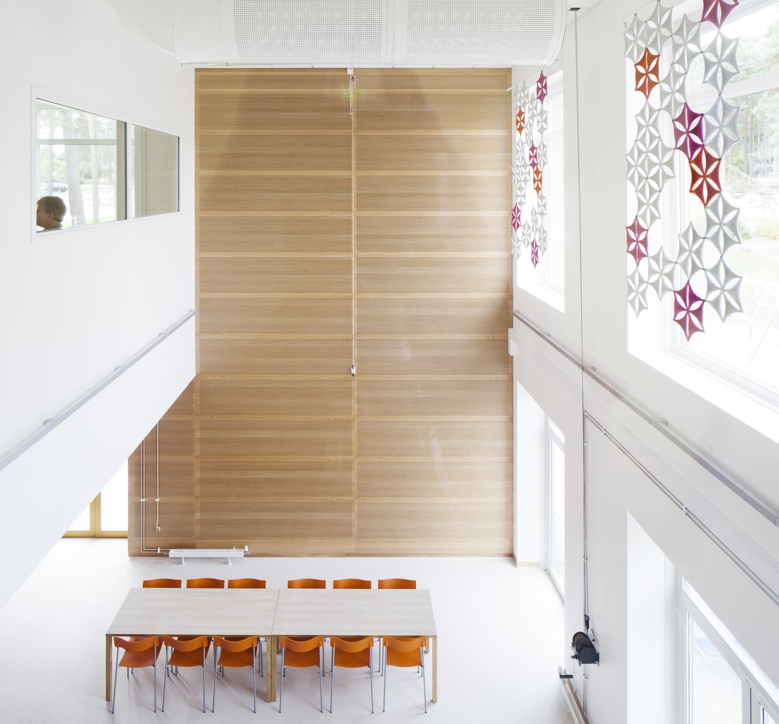 Skolan innehåller 14 hemrum med angränsande hemvist och grupprum för undervisning. Kompletterar dessa rum gör matsal och samlingsrum med scen som ska inspirera till spontana och organiserade framträdanden.
