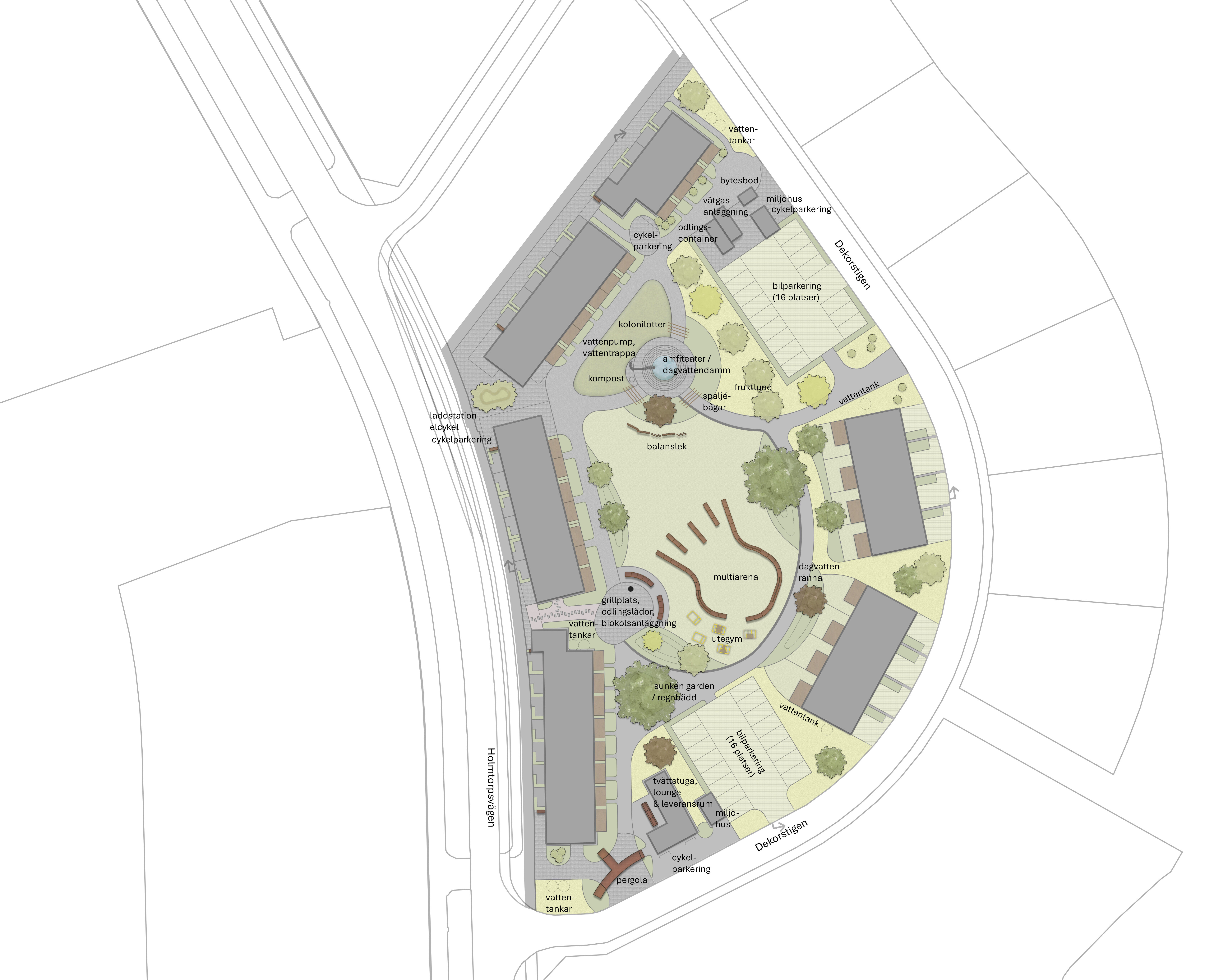 • Ett attraktivt boende där sociala åtgärder och boendeservice genomsyrar och möjliggör för bland annat flexibla planlösningar, lokal förvaltning, odlingsengagemang, ungdomsverksamhet, generösa lokaler och attraktiv gårdsmiljö.