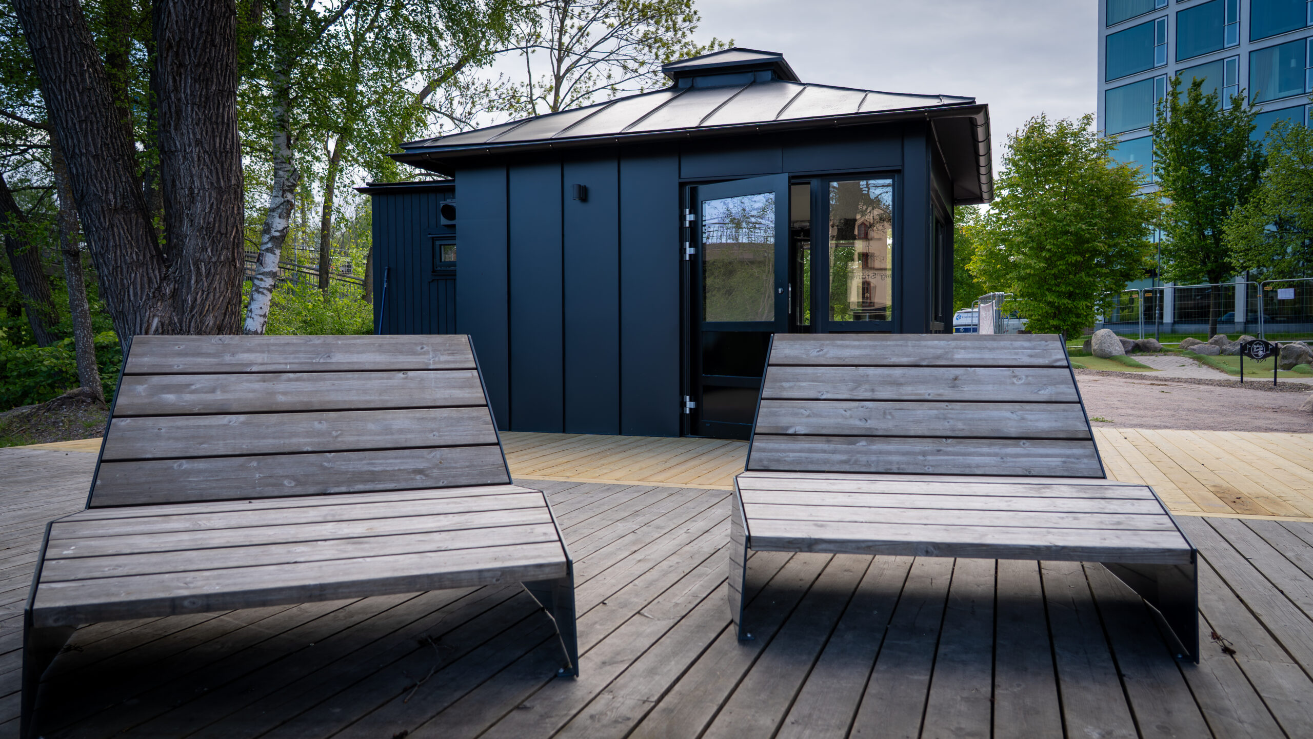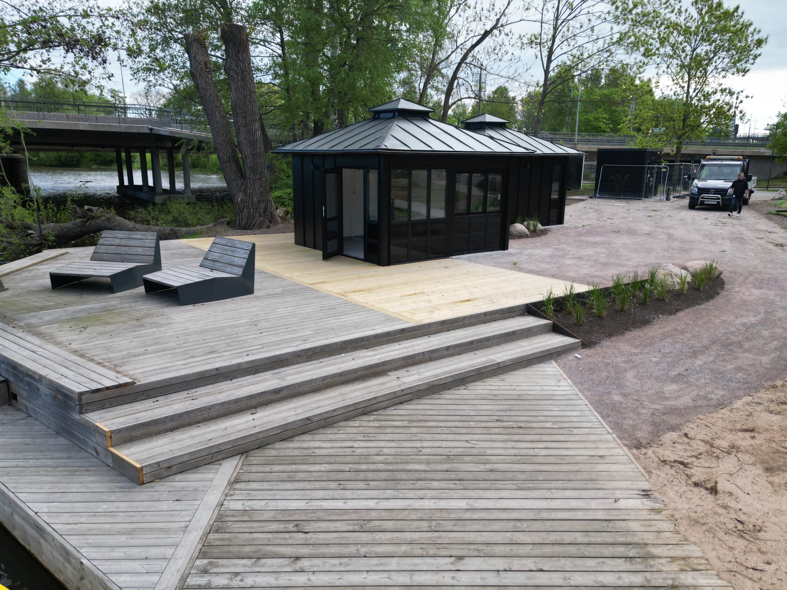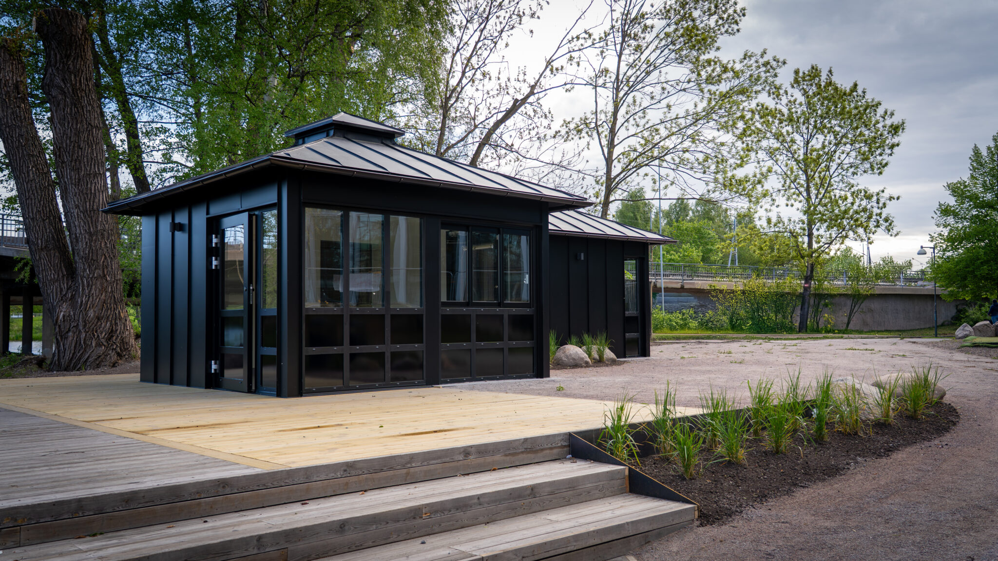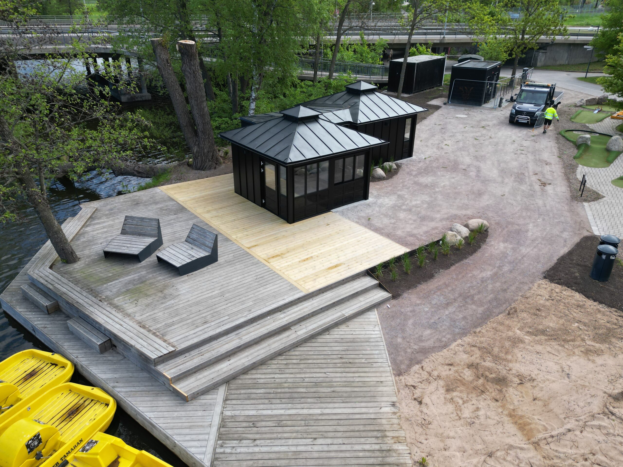 Två befintliga paviljonger har fått nytt liv och ny plats vid Stångå Beach genom en varsam omgestaltning.