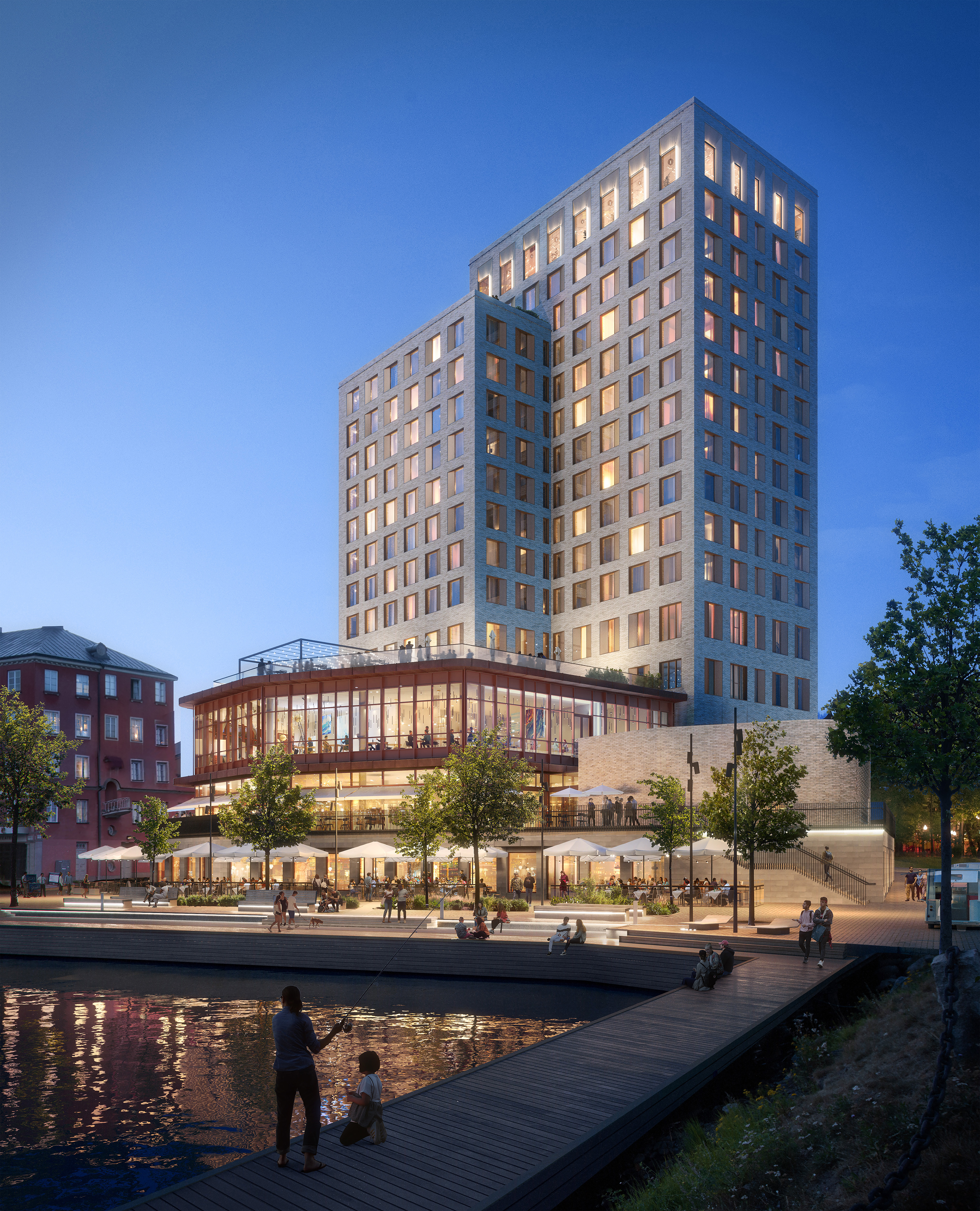 Hotellet kommer med sina 16 våningar innehålla 200 gästrum, en skybar med panoramautsikt över staden, lounge, restauranger, uteservering på en terrass mot Maren, konferensavdelning och en träningsanläggning.