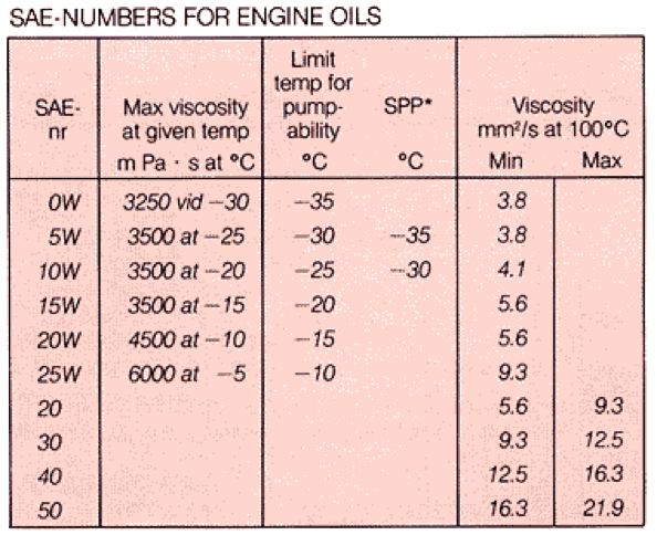 The American SAE system (SAE = Society of Automotive Engineers) is used to classify engine and transmission oils for vehicles and machines. It has 10 different viscosity classes for engine oils and 6 different classes for transmission oils. Each viscosity class is designated with a number, which for the thinnest grades is followed by the letter W. This letter indicates that the oil is suitable for winter use.