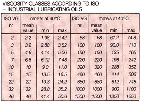 Since 1975 industrial oils are divided into 18 different viscosity classes in accordance with ISO 3448 (ISO = International Standard Organization). These classes are also documented by SIS 155441 (SIS=Sveriges Standardiserings Kommission).