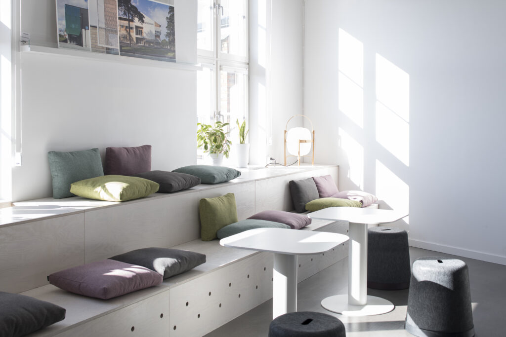 Vi arbetar i nära samarbete med uppdragsgivaren och bollar idéer fram och tillbaka för att knyta ihop miljöerna till en fungerande helhet, ibland med varierade kulörteman i olika delar som bidrar till igenkänning och förenklar kommunikationen i lokalerna.
