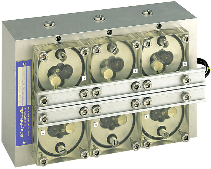 The measuring device of the meter is a pair of oval gears that provide a specified number of pulses at each revolution. The total number of pulses is converted to flow in litres per minute by an electronic measuring station. As the measuring method is based on displacement one does not have to compensate for the change in oil viscosity. The reading is correct even when the oil is cold at start-up.