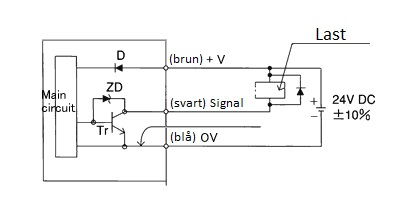 | Output | NPN transistor open collector - max. current entry: 50mA - applied voltage: 30V DC or less - residual voltage: 0.4V DC or less (at current entry 50mA) |