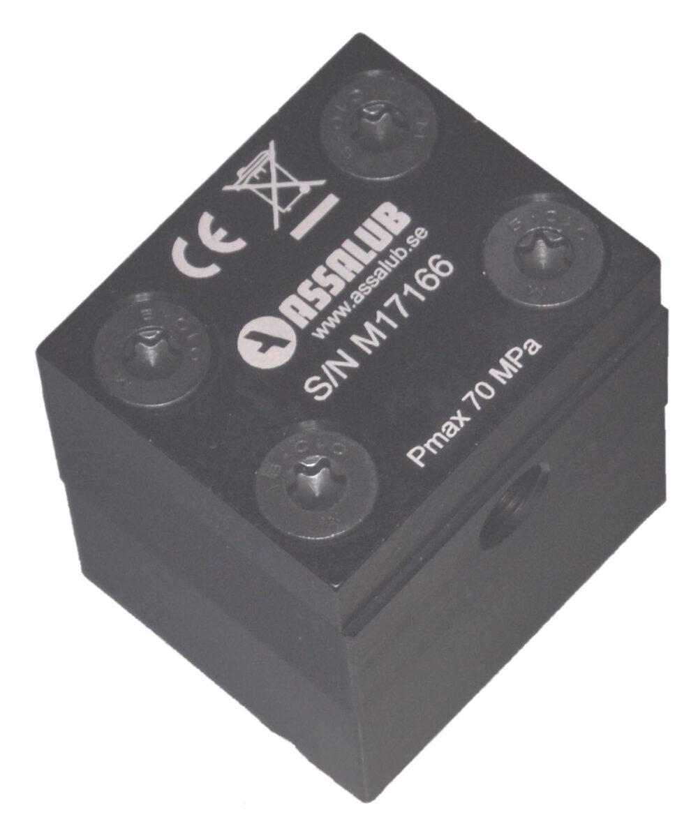 WLubeMon, Wireless monitoring system. The flow sensors measure the flow of lubricant as well as the surrounding temperature and send it to a WLubeMon control center, with a range of up to 75 m. The meters are preferably mounted as close to the lubrication point as possible to minimize the risk of leakage between the wireless flow sensor and the lubrication point.