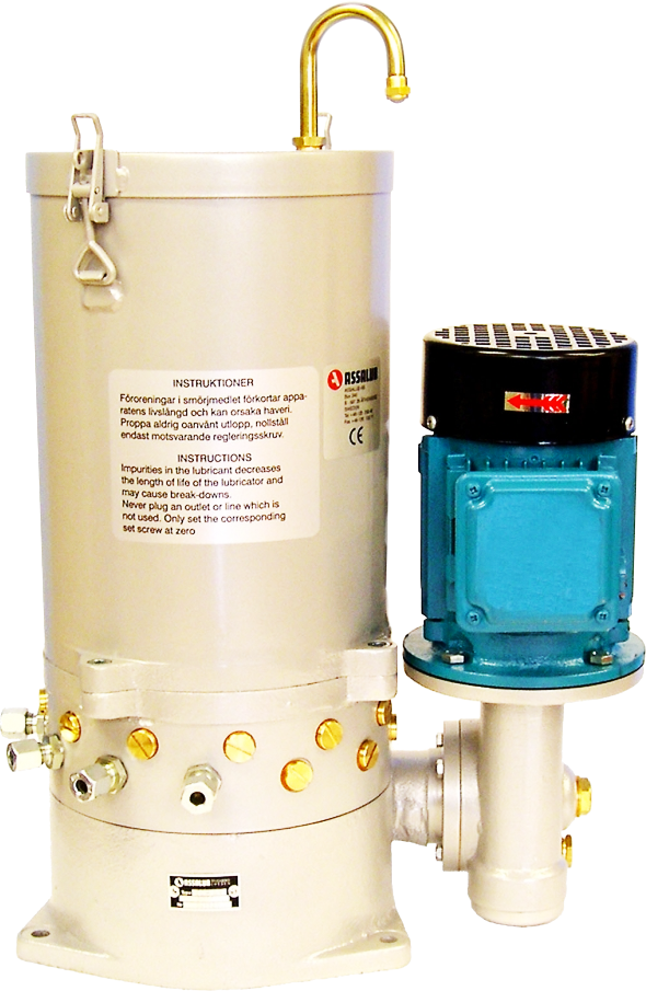 Assalub make lubricating systems for the above-mentioned applications including multi-line lubricators for grease (types FLM and FEM) and for oil (type B).