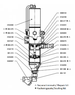 Spare parts for Assalub’s waste oil pump 1: 1. Repair- and sealing-kits for the pump and the air motor.