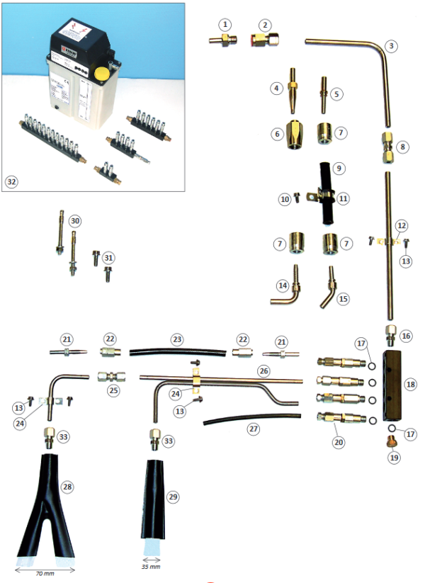 We have several decades of experience in single-line systems for lubrication in industry. Our robust systems are compatible with many types of lubricants. Browse our range of control centers, dosing valves, pump units, etc. and contact us if you have any questions!