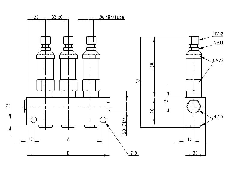Inlet och outlet: ISO-G 1/4"