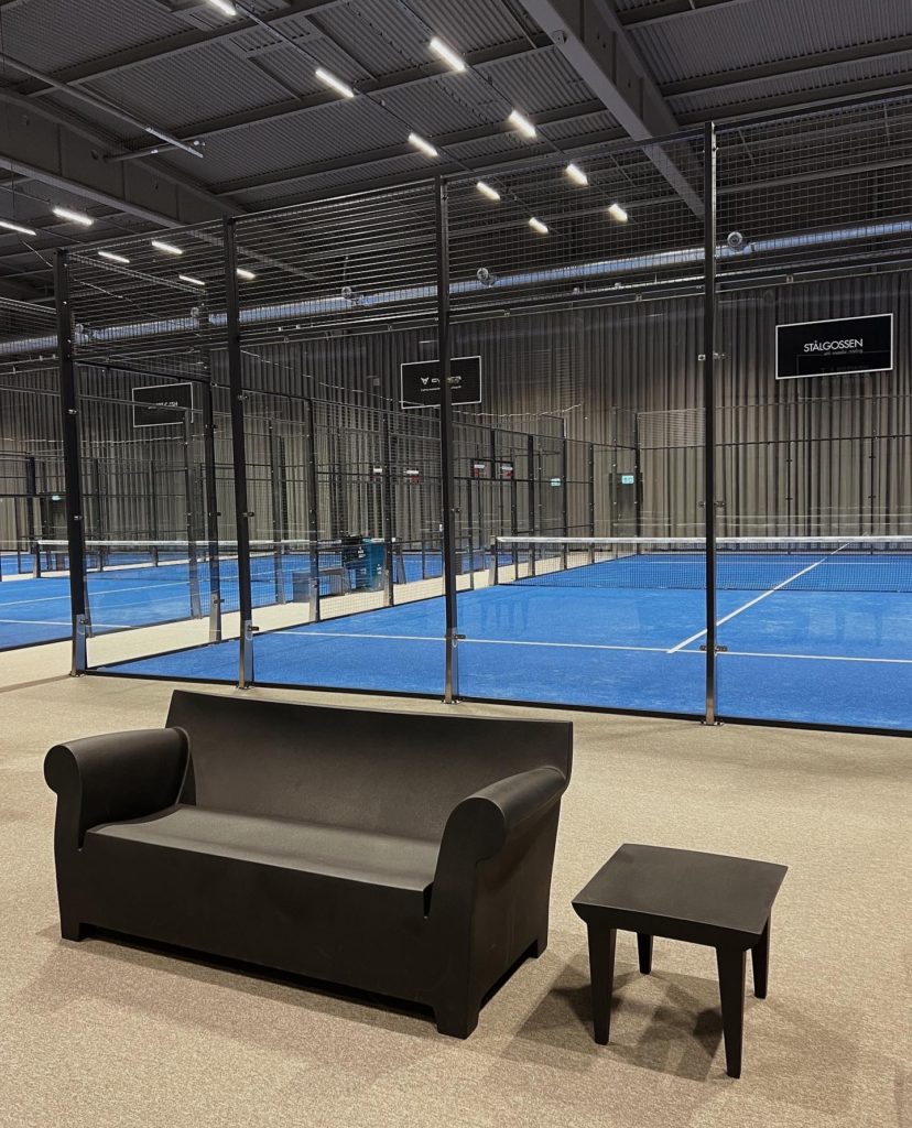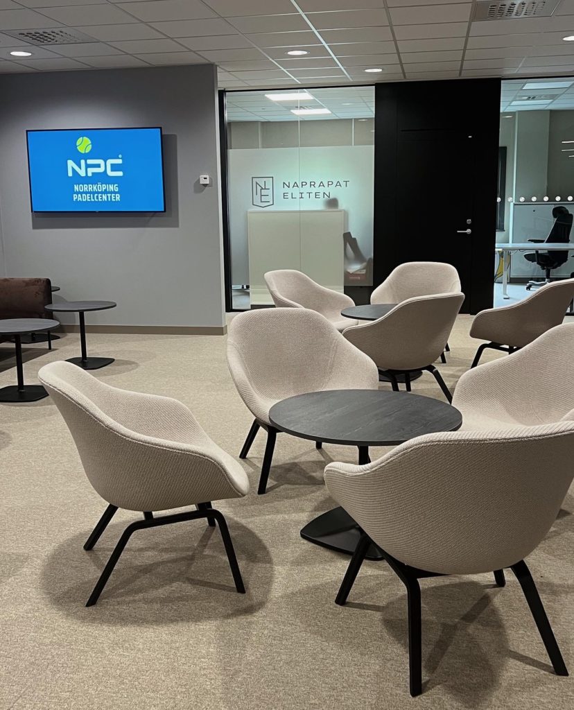En padelhall i världsklass ska självklart ha möbler och inredning som håller samma nivå och lyfter helheten lite till – det tycker vi att vi har lyckats få till här.