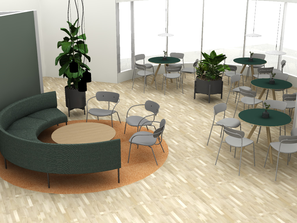 Det är ett mycket viktigt verktyg för att tillsammans komma framåt och bolla idéer kring. En del i processen för att hitta den optimala lösningen för just ert företag och ert arbetssätt. Nedan kan du se samma miljö, från olika vinklar, i en 3d-renderingar samt det verkliga resultatet.
