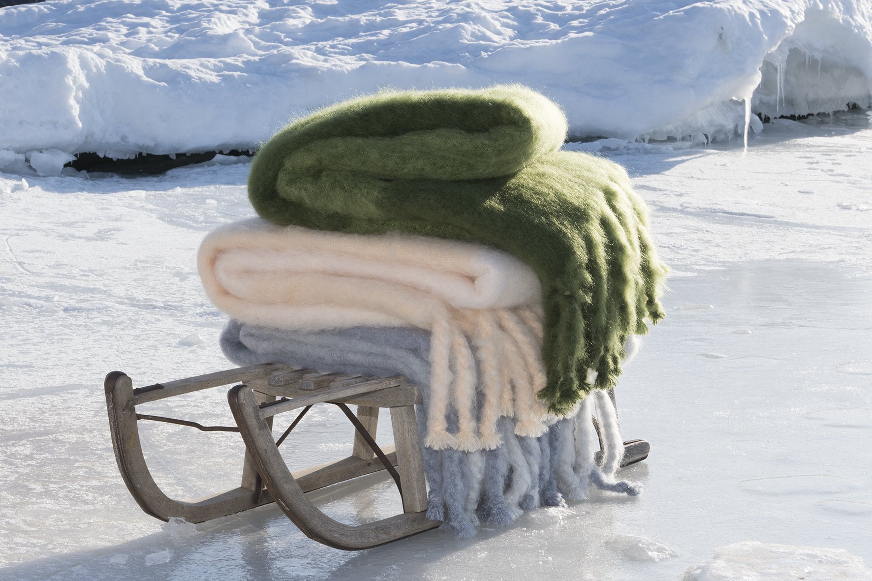 Särskilt känt för sina mjuka, lyxiga filtar som är gjorda av 100% mohair. De är handvävda och borstade i Finland och finns i flera färgkombinationer.