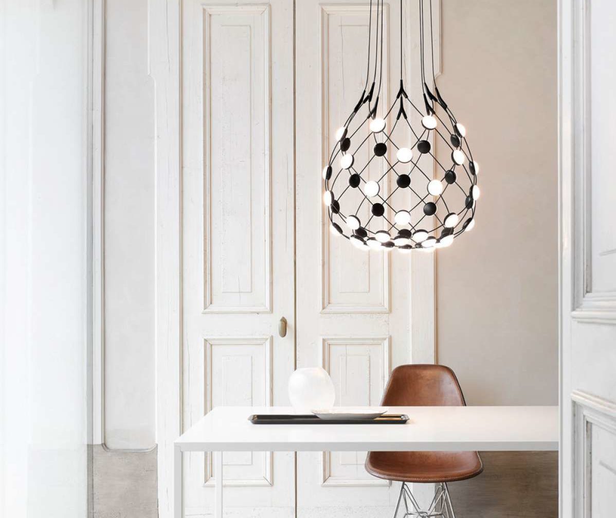 En italiensk lampspecialist som vars styrka ligger i konstruktionsförmågan och uttrycket är alltid enkelt, då det bygger på grundidén om ”lots of light, not much of a lamp”.